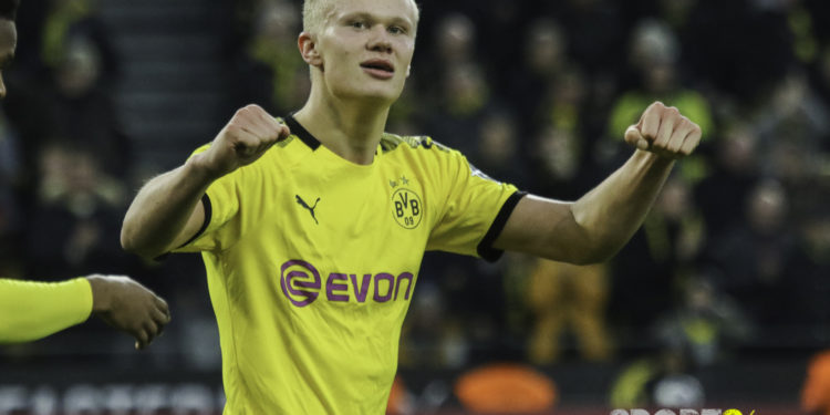 Auch wenn sich Schalke in der ersten Halbzeit mit einer gut organisierten Verteidigung der Angriffe des Gegners noch effizient wehren konnte, setzte es kurz vor der Pause einen Doppelpack. Zunächst konnte Sancho in der 42. Minute Michael Langer überwinden, der in der 32. Minute Ralf Fährmann verletzungsbedingt ersetzen musste. In der 45. Minute knipste Erling Haaland (Bild) zum verdienten 2:0.